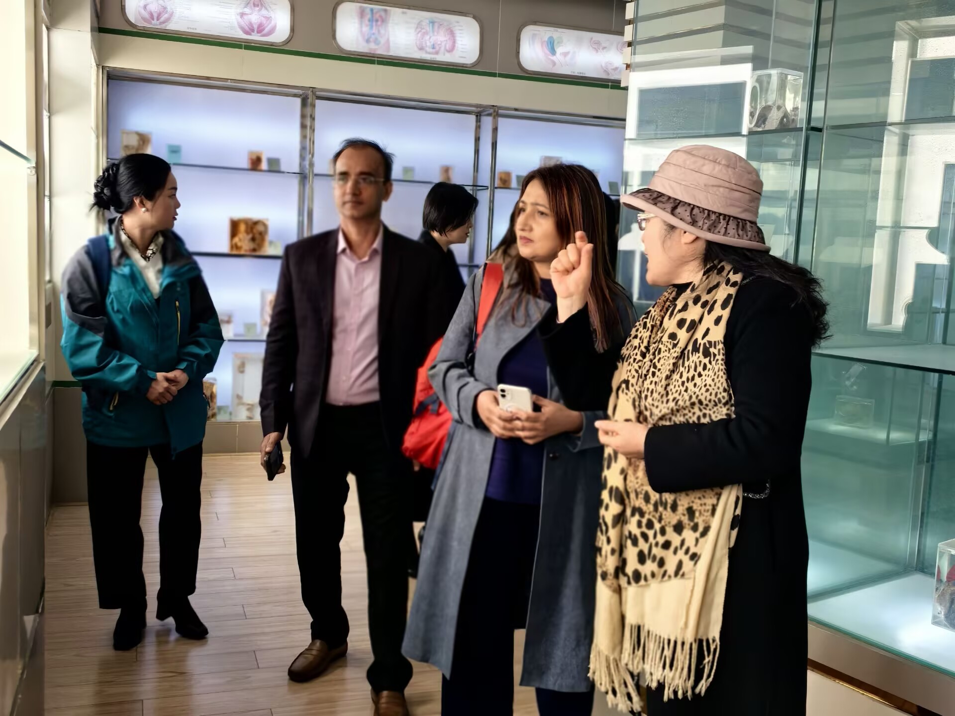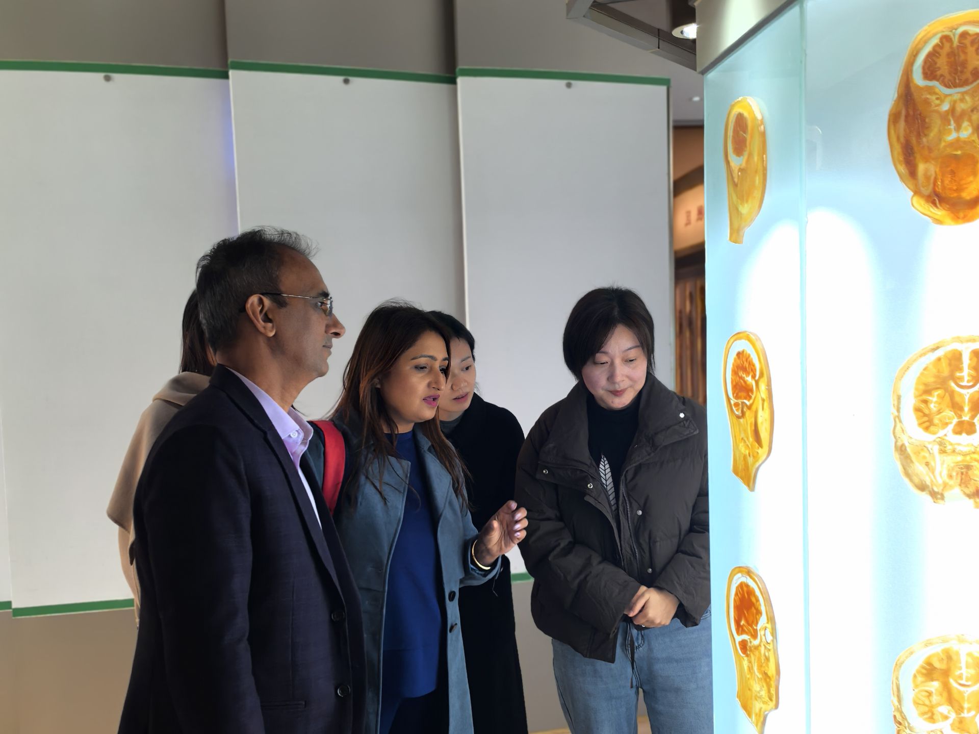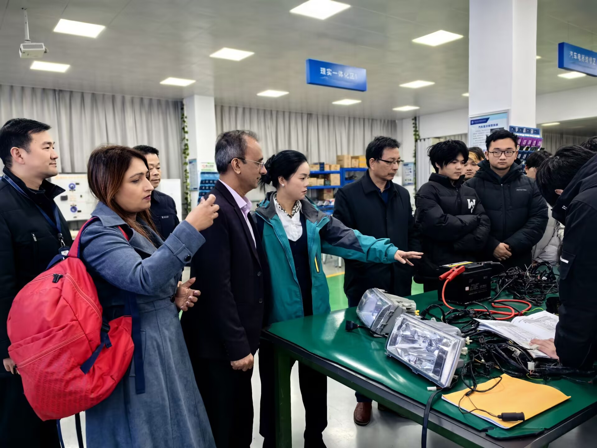 座谈结束后,考察团首先参观了医学院康复治疗技术校内实训中心及生命科学馆,详细了解了实训场地的建设及运行情况,参观了馆内陈列的人体标本等丰富展品,认真聆听讲解并了解展品背后的教学应用价值。随后前往汽车应用与轨道交通学院综合汽车实训中心观摩了相关实训设施。阿纳主席及苏尼塔校长肯定了我校实训基地的建设,认为对尼泊尔实训平台建设有借鉴价值。
