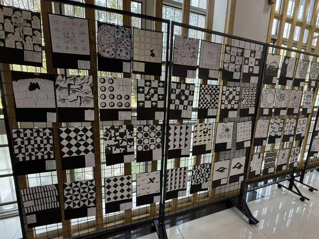 近日,建筑工程学院建筑装饰工程技术教研室举办了《基础构成》课程结课成果展。展览集中展示了2025级环境艺术设计1、2班学生的课程作业,涵盖平面构成、色彩构成与立体构成三大模块的习作共计数百件。