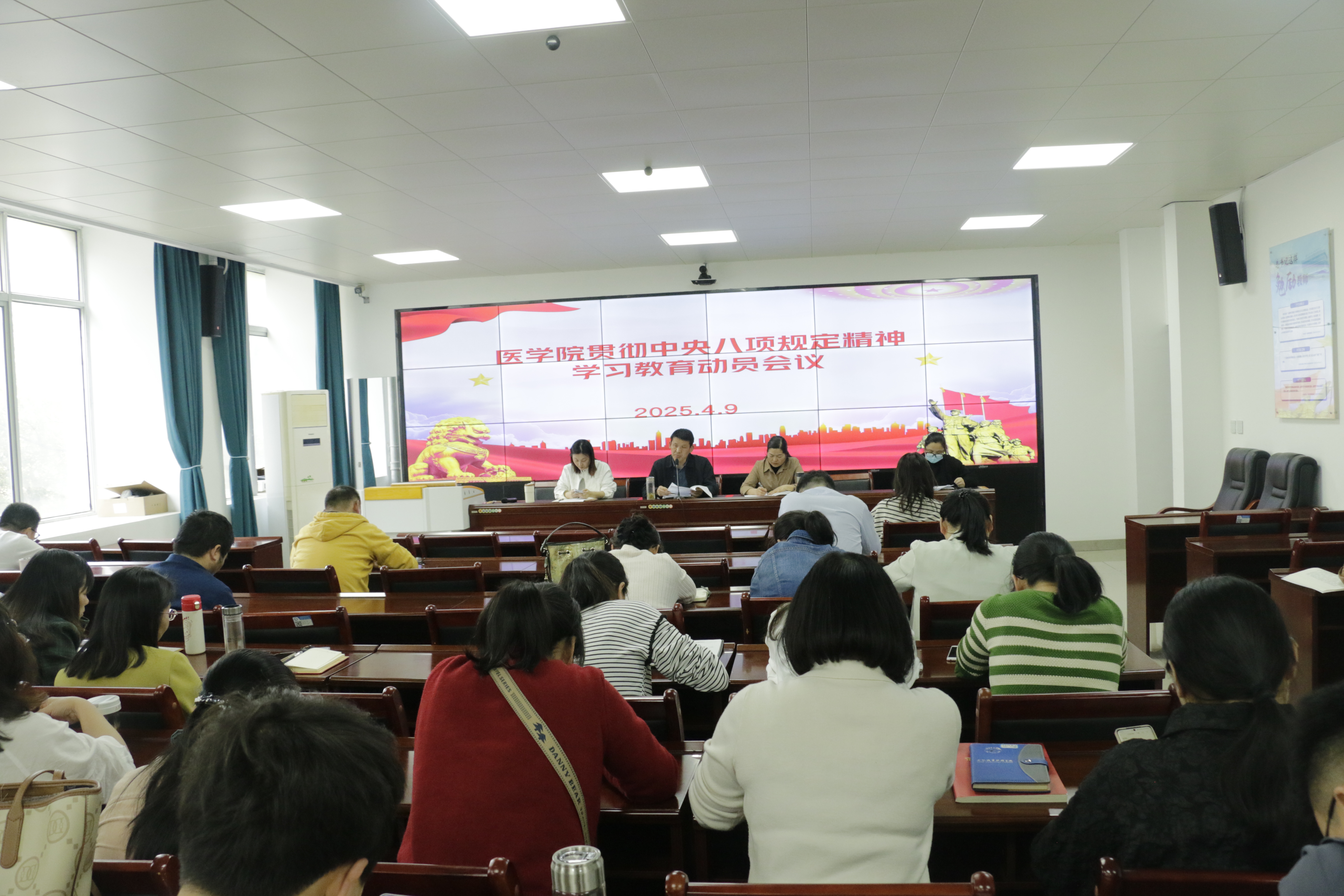 4月9日,根据学校党委的统一部署,医学院党总支在医学楼216会议室召开深入贯彻中央八项规定精神学习教育动员部署会。医学院全体教师党员参加会议,会议由医学院党总支副书记(主持党总支工作)邹华兵主持。