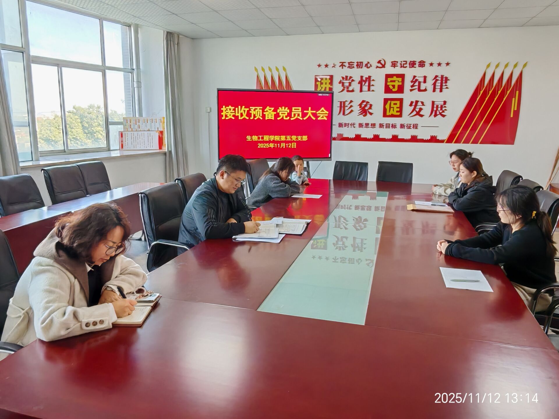 生物工程学院第五党支部于2025年11月12日在生化楼A311会议室召开接收预备党员大会,生物工程学院第五党支部全体党员及发展对象汪涵同志参加本次会议。